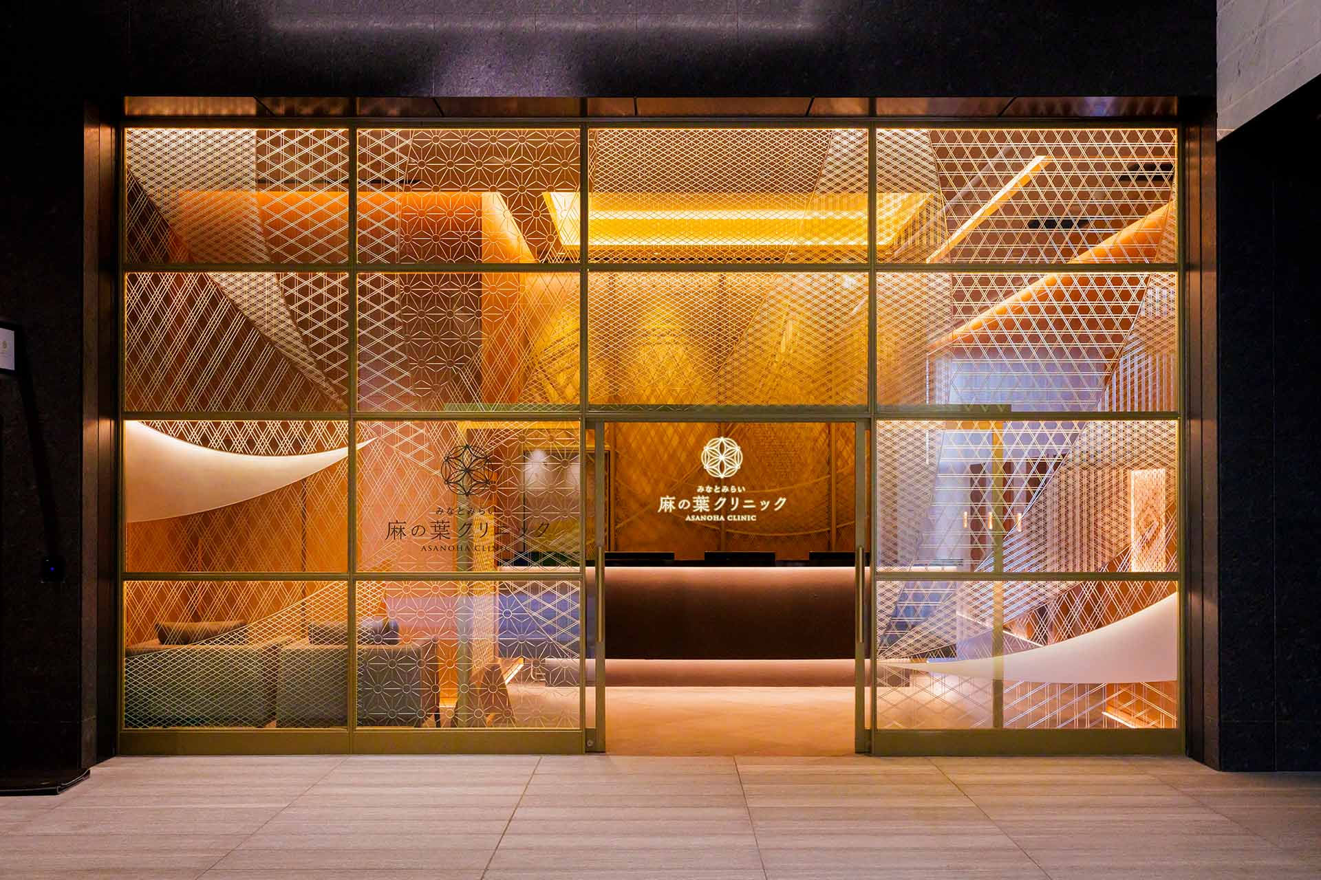 現在、麻の葉クリニックは再生医療と美容医療の二本柱で運営されている。常勤スタッフは大井を含めて10人、非常勤の医師も複数名在籍している。海外からの患者も積極的に受け入れており、通訳を用意して対応できる体制を整えているのが特徴だ。 規模の拡大を追求するのではなく、みなとみらいという地域に根ざしながら、患者一人ひとりに誠実に対応することを重視しているという大井。産婦人科時代から心がけてきた患者との対話を大切にする外来診療のスタイルが、この空間に反映されている。 「麻の葉」という名称には深い意味が込められている。みなとみらいという場所は海外からの訪問者も多い。日本人だけでなく、海外の人々にも日本の伝統的な組子模様を見てもらいたい。また、日本人としての誇りを持ってスタッフ一同が紳士的に診療に当たりたい。麻の葉組子模様をモチーフにデザインしたことには、そうした背景がある。